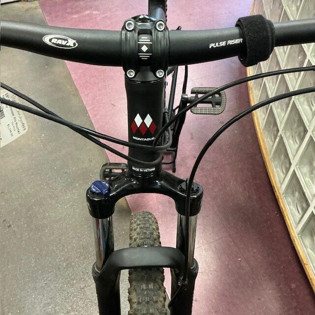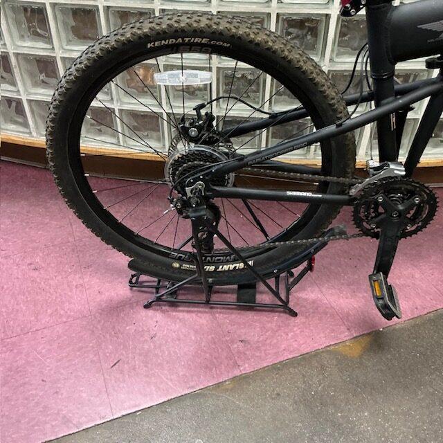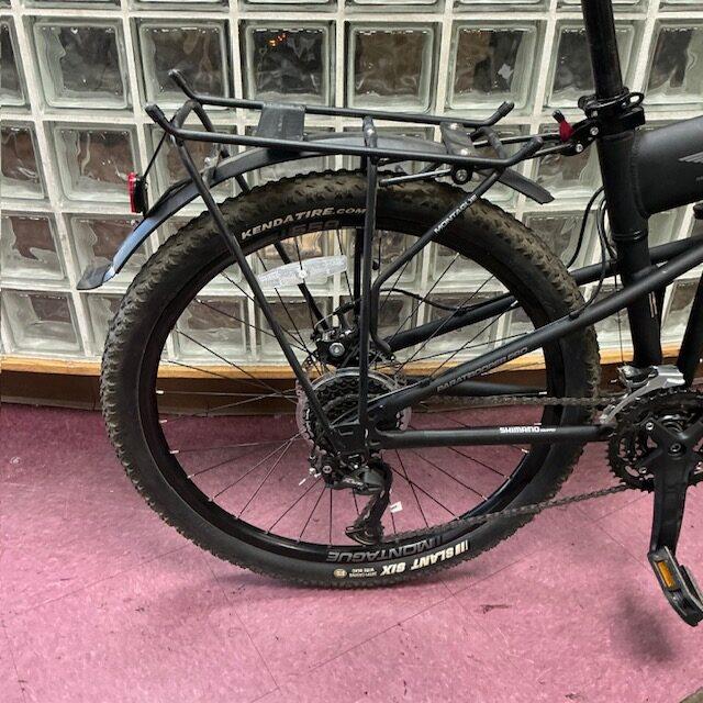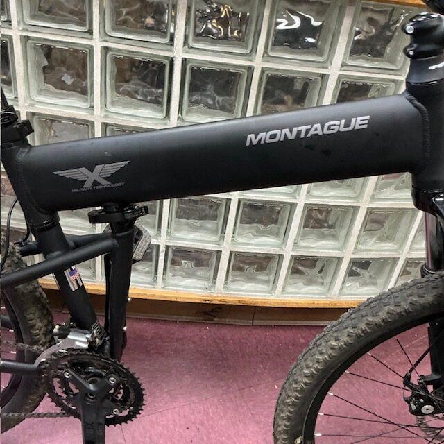 Used 18″ Montague Paratrooper Pro Folding Mountain Bike for sale in our store. It comes with a Montague Soft Carrying Case, Ergon GP1-S Grips and Rackstand. It has 27 speeds and fits in its soft case by removing the front wheel to fold. The 18″ medium frame best fits riders 5’3″-5’10”. It has been serviced in our shop.