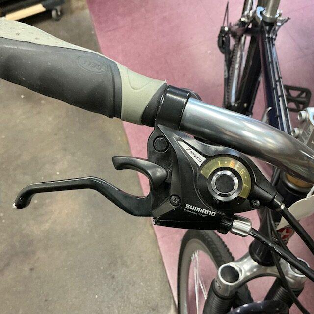 This large frame Schwinn Avenue Hybrid bike is for sale in our store and is suitable for taller riders. It comes with Shimano 3×7 shifters and Shimano derailleur, SA Suntour suspension fork and suspension seat post. It has been serviced in our bike shop.