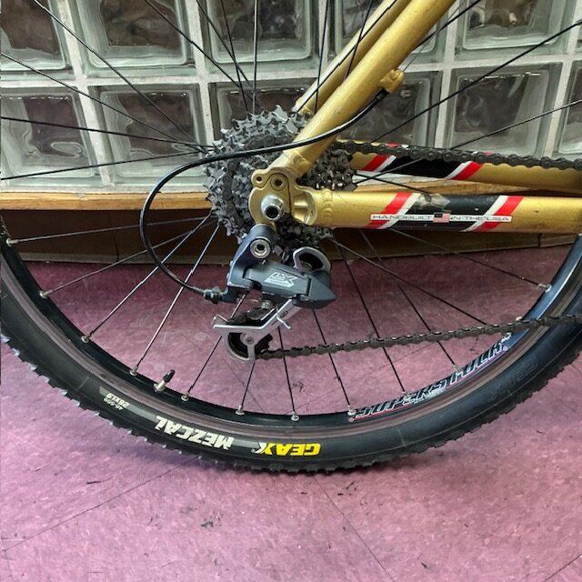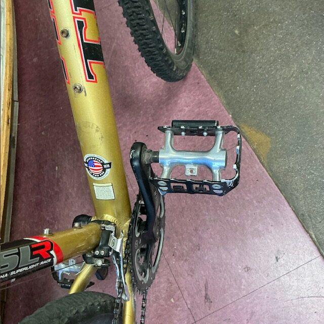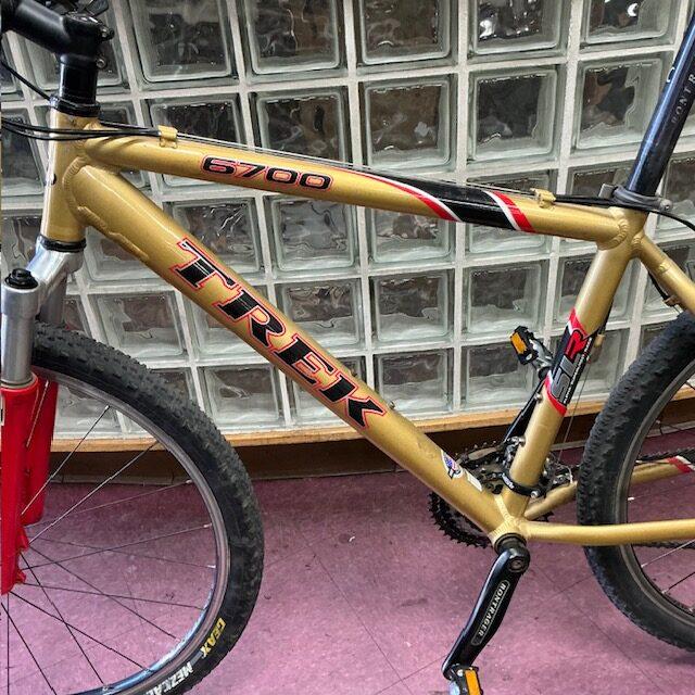 Used Trek 6700 Mountain Bike available at our store. It has Rock Shox front suspension and Shimano Deore shifting. 3×8 gearing. Early 2000s. It has been gone through by our repair shop and everything functions.